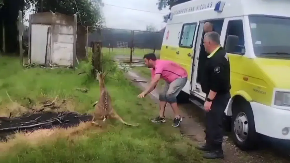 Horas más tarde, desde el Cuartel de Bomberos informaron que el ciervo fue trasladado a un campo seguro, donde recibe atención médica del veterinario municipal, doctor Gastón Canevaro, perteneciente al Municipio de San Nicolás.