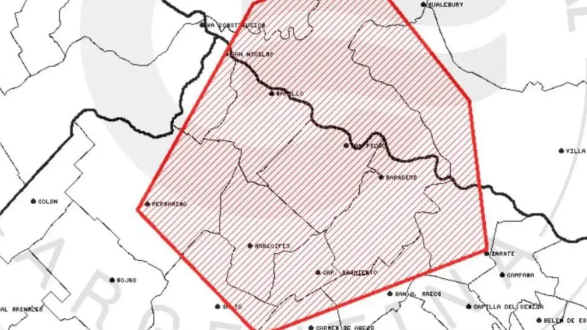 📲 Click AQUÍ El fenómeno afecta parcialmente a los partidos bonaerenses de San Nicolás, Ramallo, San Pedro, Pergamino, Arrecifes, Baradero, Capitán Sarmiento, Carmen de Areco, Salto, San Antonio de Areco y Zárate, además de los departamentos entrerrianos de Gualeguay, Islas del Ibicuy y Victoria.
