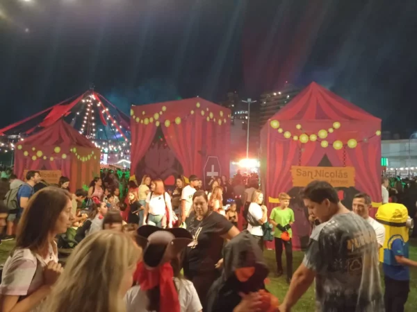 La celebración que organizó la Municipalidad de San Nicolás ya se encontraba finalizada y había convocado a una gran cantidad de asistentes en el sector del Empedrado de la Costanera. Durante este sábado se desarrolló la primera noche de la propuesta, con disfraces muy variados y familias que eligieron acercarse para ser parte del inicio del fin de semana temático.