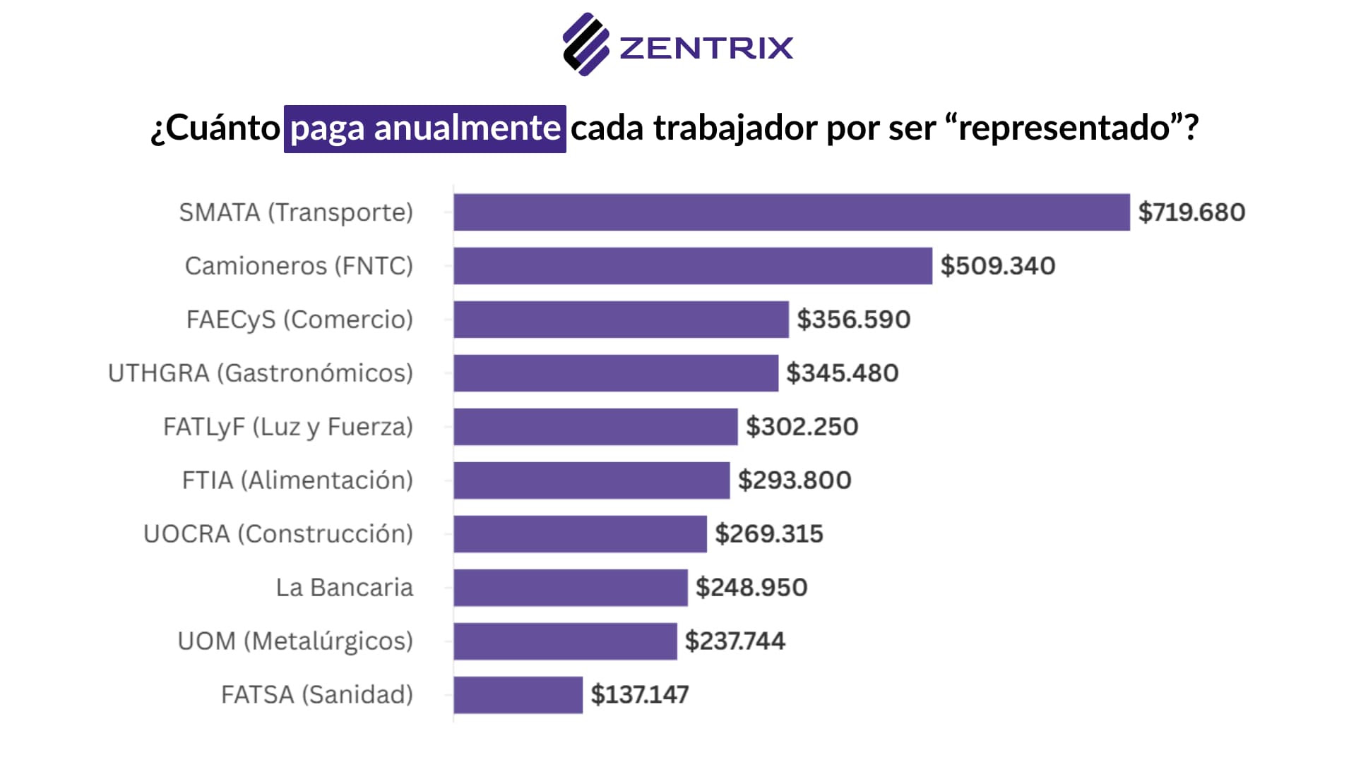 Los 10 principales gremios manejan un flujo anual que ronda los USD 685 millones, originado en descuentos obligatorios aplicados sobre el salario formal, también a trabajadores no afiliados. En pesos, esa recaudación supera ampliamente el billón de pesos por año. El dato surge del estudio de investigación “El poder sindical en Argentina: estructura, financiamiento y límites a la libertad del trabajador” realizado por el equipo de Zentrix Consultora, que expone la magnitud del financiamiento sindical compulsivo y revela un esquema de alta concentración, escasa transparencia y conducciones que se sostienen durante décadas gracias a este flujo permanente de recursos.