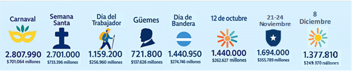 • El impacto de estos feriados fue significativo no sólo por la cantidad de personas movilizadas, sino también por su efecto dinamizador sobre las economías regionales, con beneficios para miles de pymes vinculadas con la actividad turística.