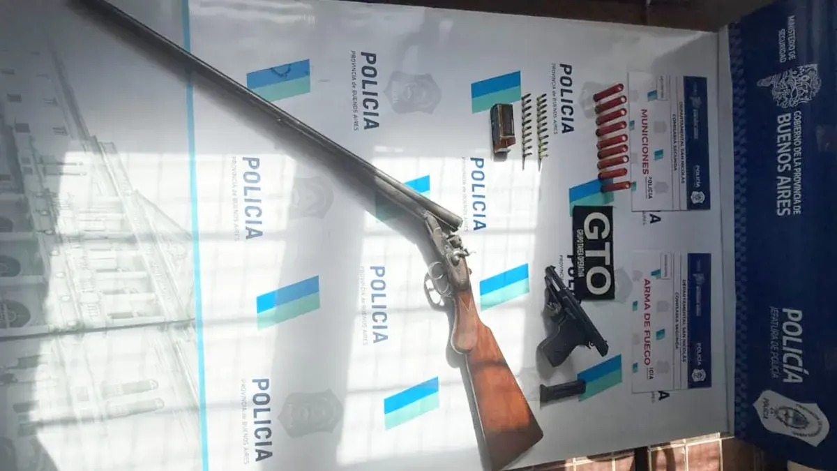 La medida fue otorgada por el fiscal en turno y se concretó en un domicilio de calle Echeverría al 500, arrojando un resultado altamente positivo. Durante el procedimiento, el personal policial incautó una pistola Bersa calibre 22 mm de color negro, 21 municiones calibre 22 mm, una escopeta doble caño Byard calibre 28 mm con culata de madera y 9 cartuchos de posta de guerra calibre 28 mm.