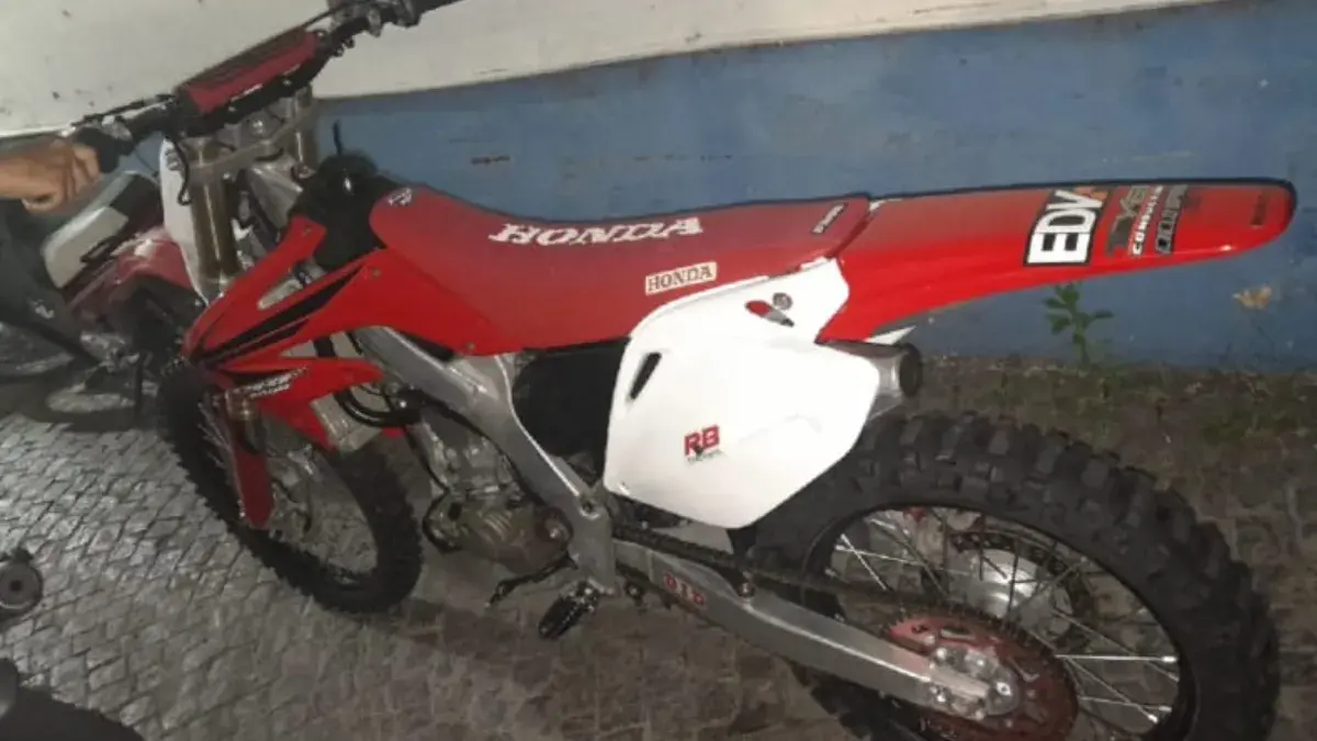 Una motocicleta Honda CRF 250 Rsin patente y con el número de cuadro adulterado.