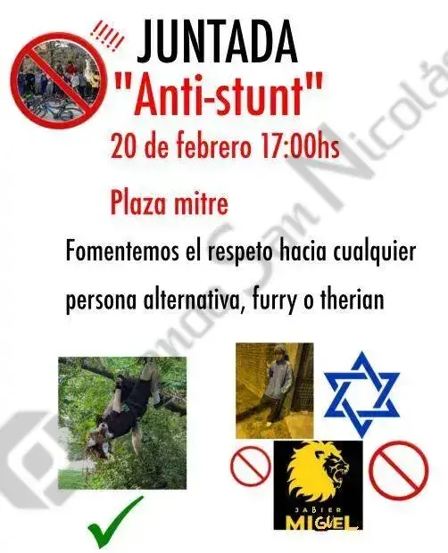 El próximo viernes 20 de febrero, desde las 17:00, se realizará una juntada abierta en Plaza Mitre bajo la consigna “Anti-stunt”, con el objetivo de promover el respeto hacia todas las personas, incluyendo identidades alternativas como furry y therians.