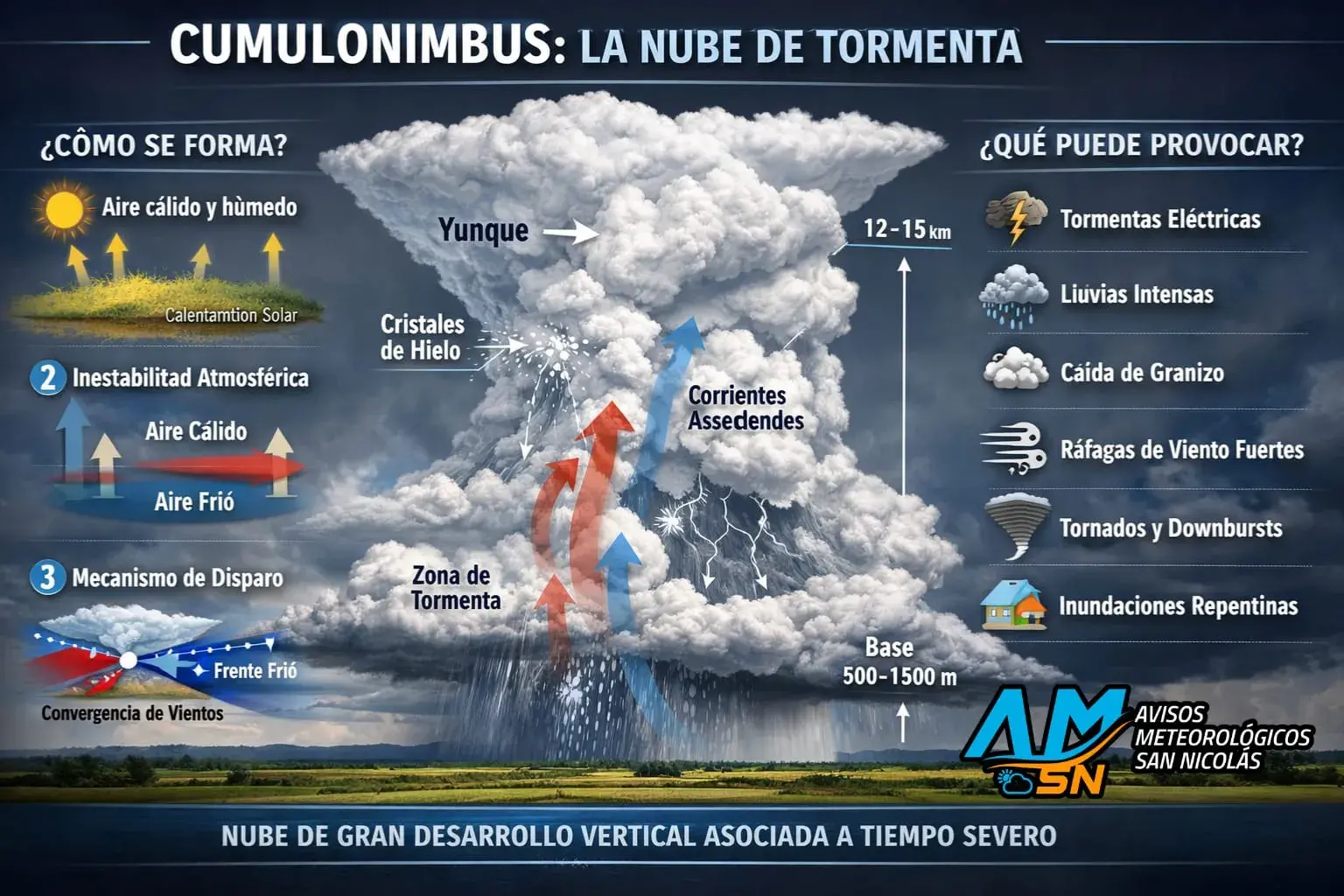 📲 Click AQUÍ Es, en términos técnicos, una nube convectiva profunda, capaz de extenderse desde unos 500 a 1.500 metros de altura hasta superar los 10, 12 o incluso 15 kilómetros en eventos severos.