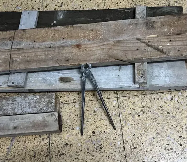 Maderas de encofrado y una tenaza.