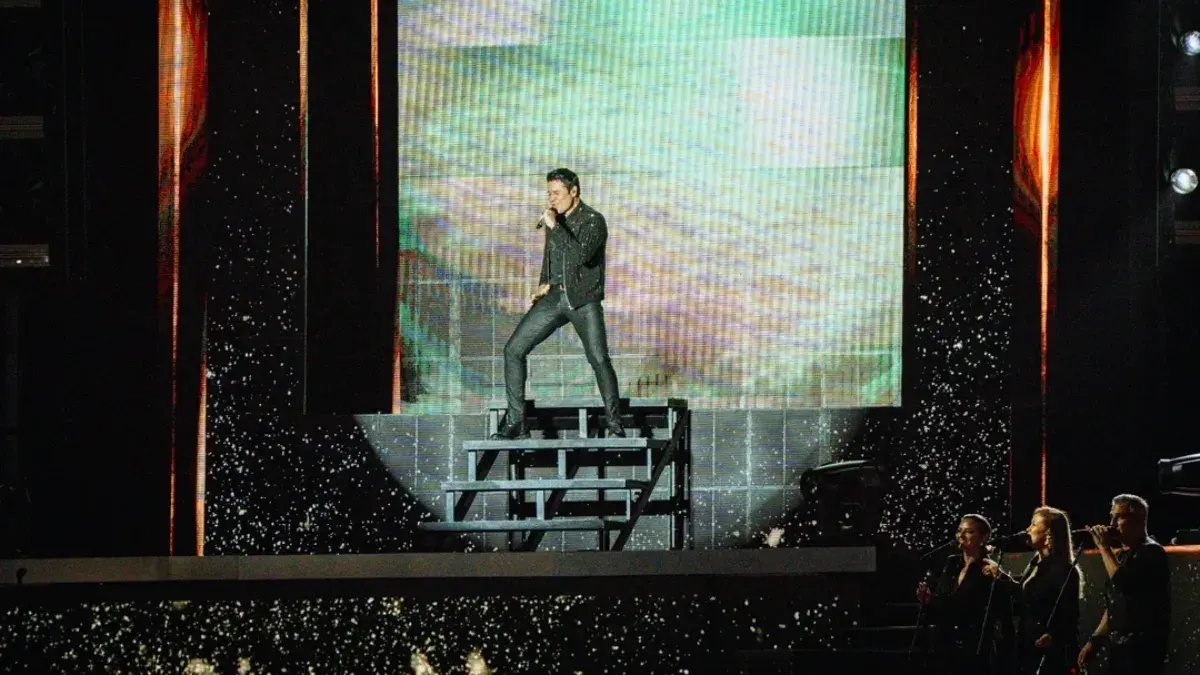 Con producción de Fénix Entertainment, el espectáculo combinó una banda en vivo, un cuerpo de bailarines y una puesta escénica de gran despliegue, mientras el artista recorría distintos momentos de su carrera.