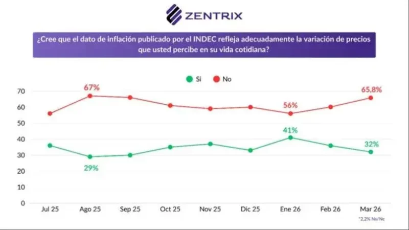 El 65,8% de la población considera que la inflación informada por el INDEC no refleja la realidad cotidiana.