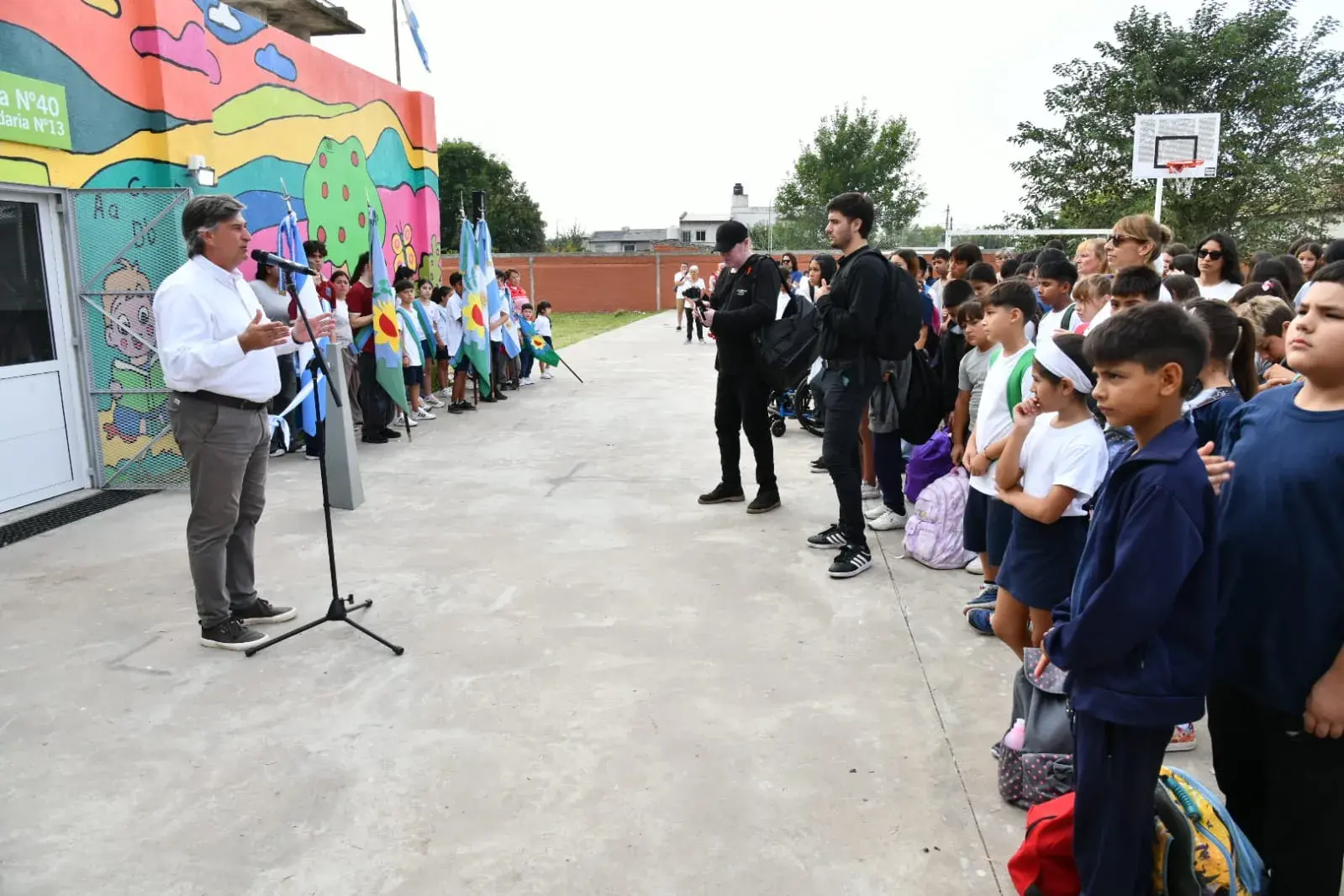 En los sectores exteriores también se concretaron avances importantes que amplían las posibilidades educativas y recreativas. Entre ellos se destacan la construcción de una cancha de básquet, la realización de un mural de gran tamaño y la creación de un espacio de huerta con fines pedagógicos. Este último proyecto se desarrolló en articulación con la Facultad de Ciencias Agrarias de la Universidad Nacional de Rosario, con el objetivo de fomentar el aprendizaje práctico y el vínculo con el entorno.