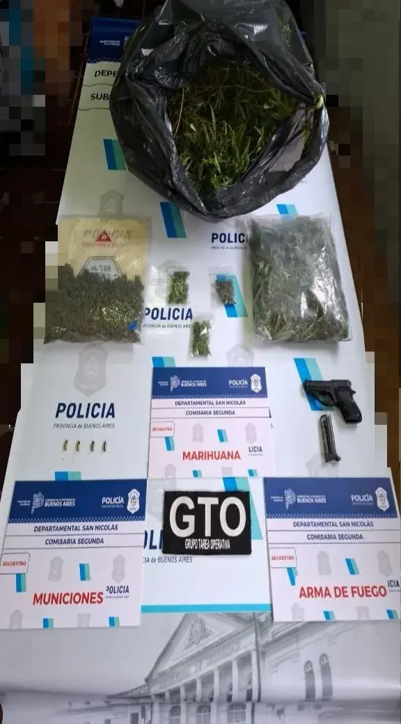 Durante el allanamiento también se incautaron 385 gramos de cogollos de cannabis sativa y una planta de aproximadamente 2 kilos, lo que derivó en actuaciones por infracción a la Ley 23.737.