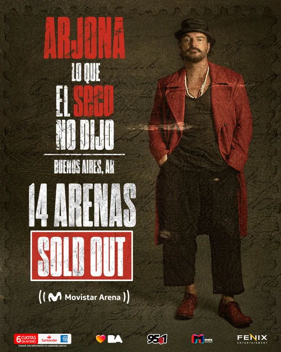 El cantante guatemalteco Ricardo Arjona volvió a demostrar su poder de convocatoria en Argentina al agotar la fecha número 14 en el Movistar Arena, en el marco de su gira “Lo que el Seco no dijo”.