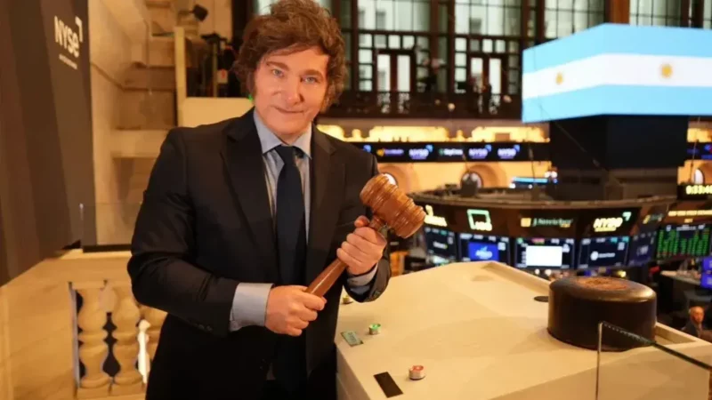 El presidente argentino, Javier Milei, inauguró la jornada bursátil en la Bolsa de Nueva York tocando la emblemática campana y…
