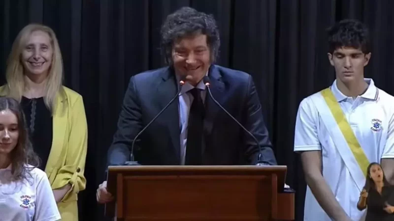 El presidente Javier Milei da inicio al ciclo lectivo 2024 en su antiguo colegio