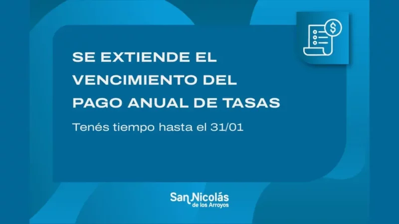 La Municipalidad de San Nicolás extendió hasta el 31 de enero el plazo para poder realizar el pago anual de las tasas de Desarrollo Urbano, Red…