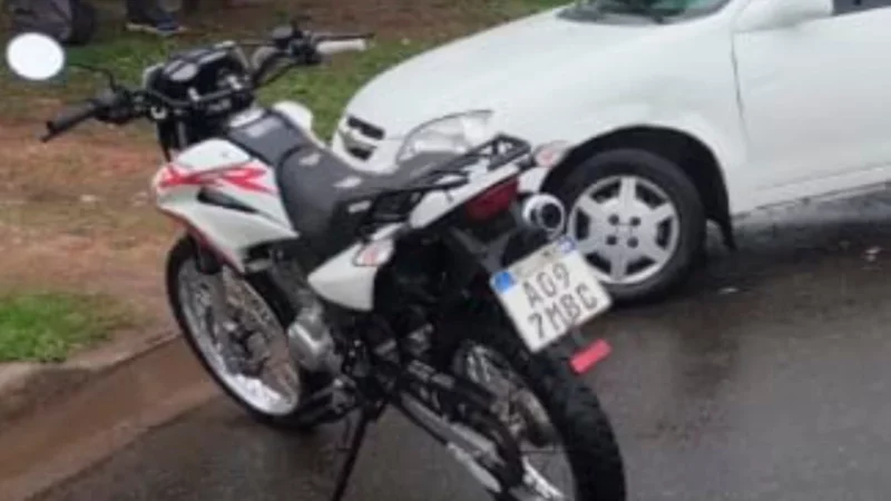 Colisión entre auto y motocicleta en Av. Moreno deja a mujer con lesiones leves