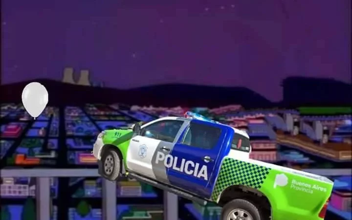 Suspendieron a los policías que fueron filmados intentando reventar un globo amarillo con el patrullero
