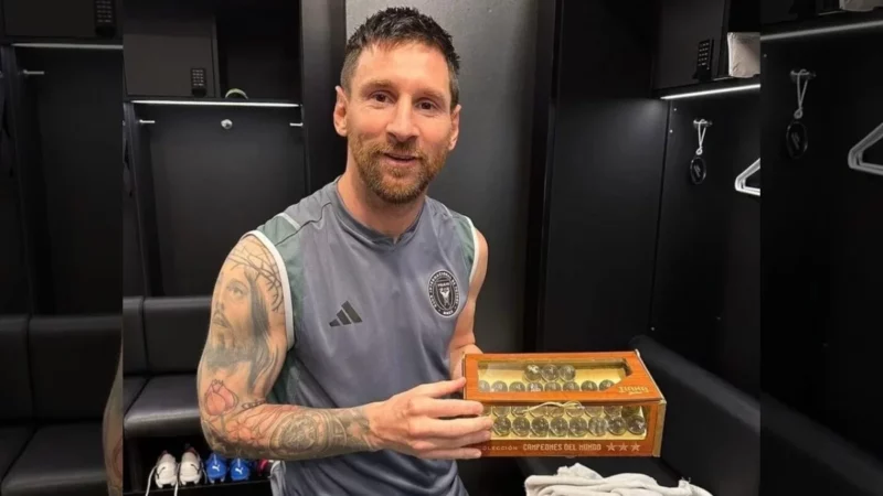 Messi recibe colección de bolitas en honor a la victoria mundial de Argentina