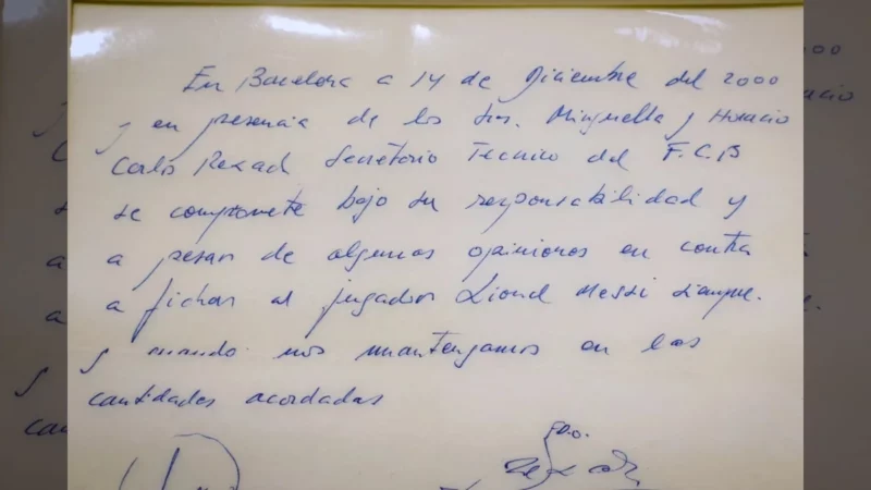 La emblemática servilleta en la que Lionel Messi rubricó su primer contrato profesional con el Barcelona de España ha encontrado…