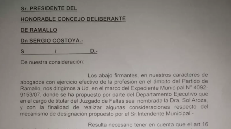 Se trata de un grupo de abogados de Ramallo que enviaron una nota al Concejo Deliberante rechazando la designación de…