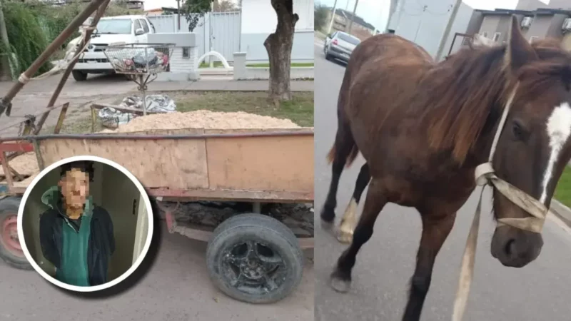 Rescataron a un caballo en mal estado que tiraba un carro sobrecargado de arena robada