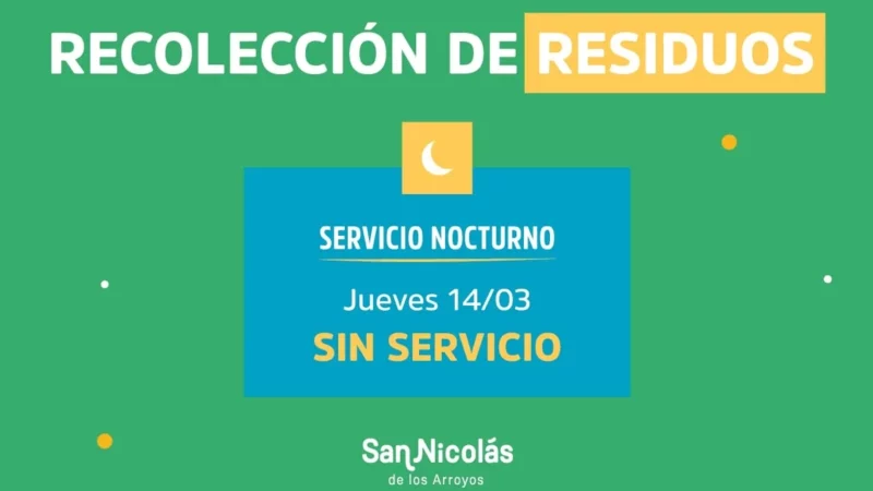 La Municipalidad de San Nicolás informa que hoy no habrá recolección de residuos nocturna. Se solicita a los vecinos no…
