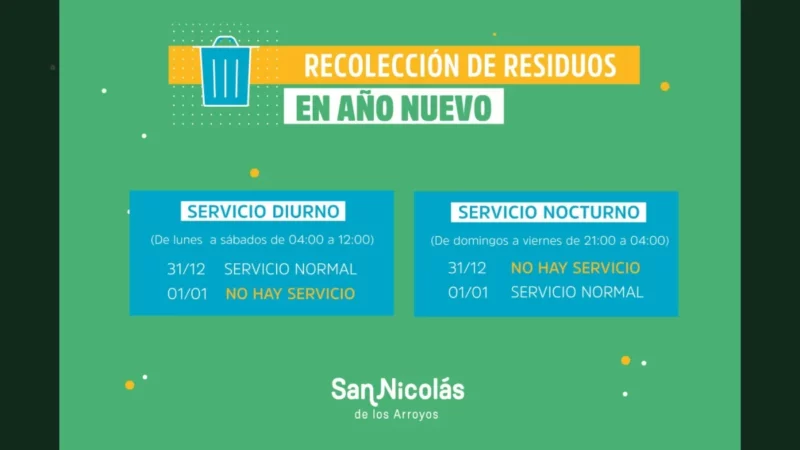 La Municipalidad de San Nicolás informa que, debido al feriado del 1 de enero, habrá cambios en la frecuencia de recolección de residuos sólidos…