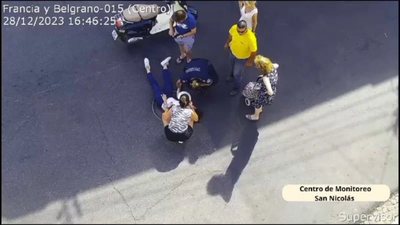 Accidente de tránsito: una motocicleta resbaló en la esquina de Francia y Belgrano
