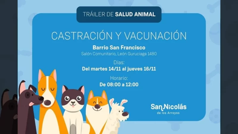 El tráiler de castración y vacunación de la Municipalidad de San Nicolás estará desde el martes 14 hasta el jueves 16 de noviembre en…