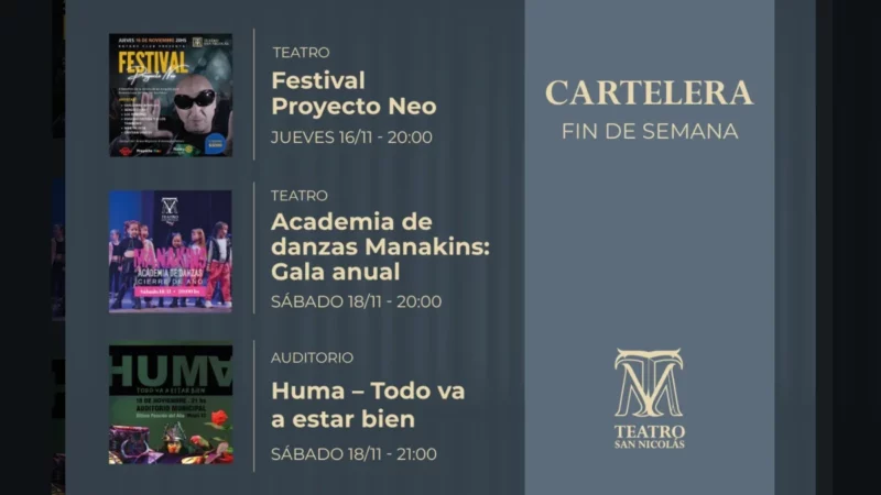 En este fin de semana largo, la cartelera del Teatro San Nicolás se renueva con propuestas de danza, música y creaciones teatrales.…