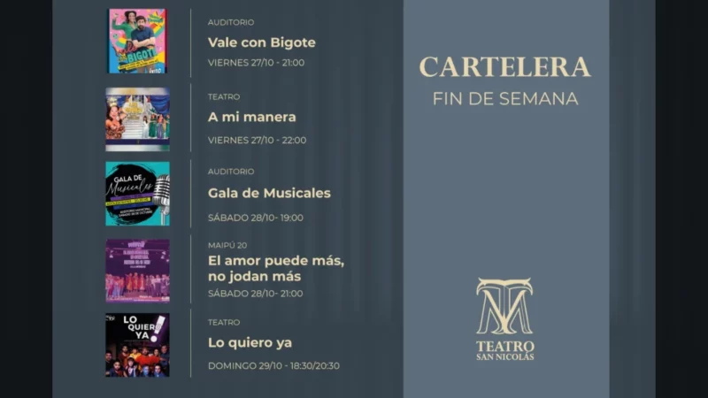 Desde el jueves hasta el domingo, la cartelera del Teatro San Nicolás se renueva presentando diversas opciones de danza, música y humor.…