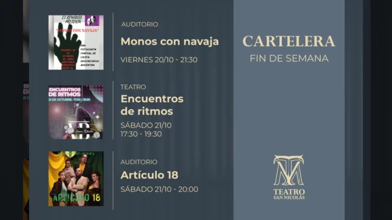 Este sábado 21 de noviembre, el Teatro de San Nicolás ofrecerá una variada selección de espectáculos para el disfrute del…