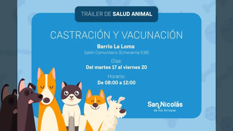 La Municipalidad de San Nicolás llevará a cabo un servicio de castración y vacunación en Echeverría 538 de barrio La…