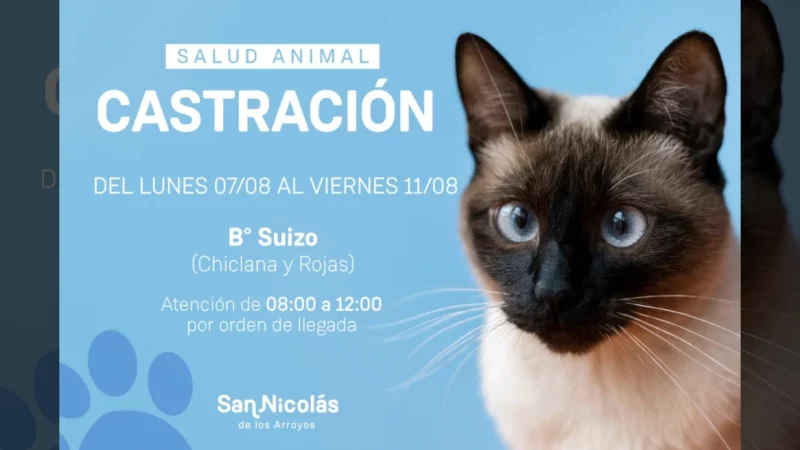 La Municipalidad de San Nicolás brindará el servicio de castración y vacunación desde mañana lunes 7 de agosto al viernes 11 de…