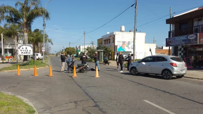 Accidente en via pública involucrando motocicleta y automóvil