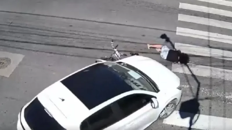 Accidente de tránsito: un automóvil colisiona con una bicicleta