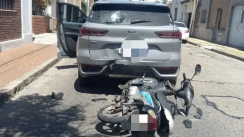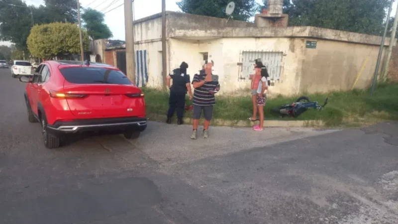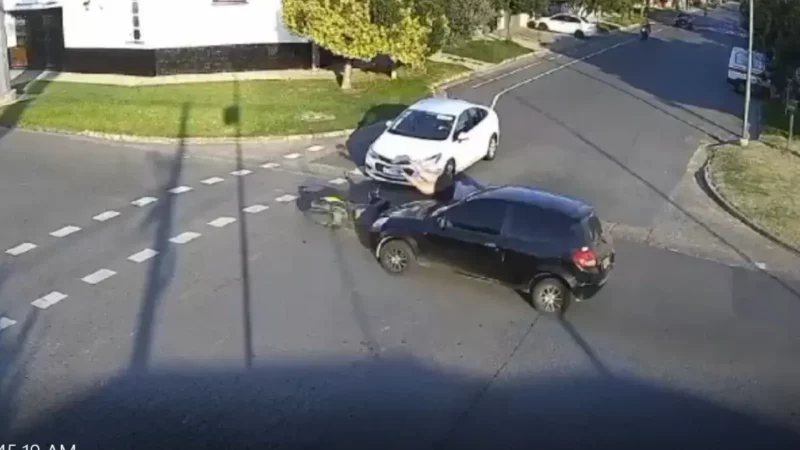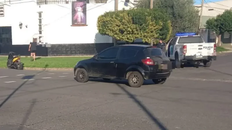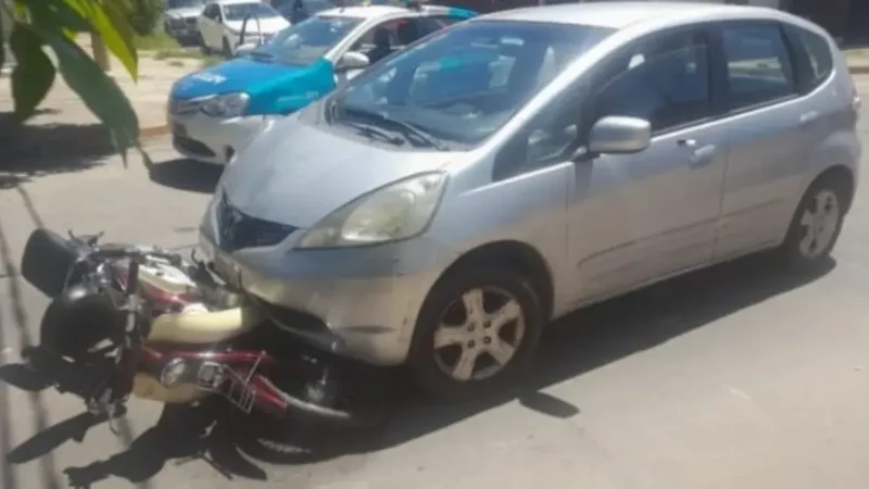 Accidente de tránsito en pleno centro: colisión entre automóvil y motocicleta
