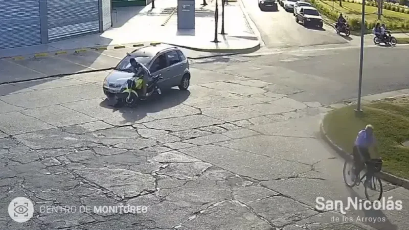 Accidente entre automóvil y motocicleta deja dos heridos en San Nicolás