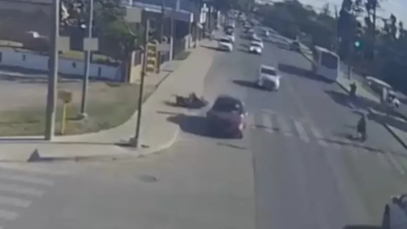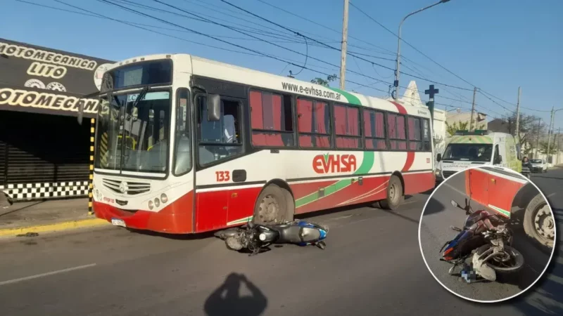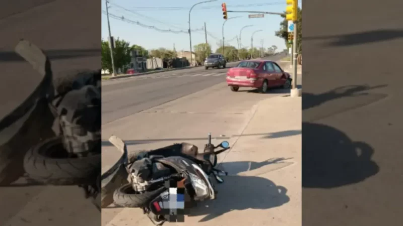 Accidente en Av. Moreno y América involucra a automóvil, colectivo y motocicleta
