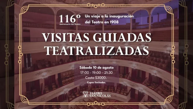 Este sábado 10 de agosto, hacemos un viaje hacia la inauguración del Teatro San Nicolás para celebrar su 116º aniversario con un recorrido por sus…